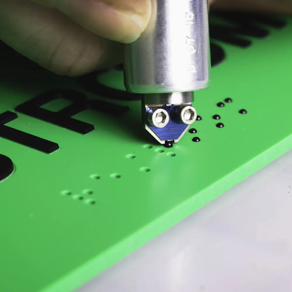 Your custom-made, ADA-compliant signage won’t look off-the-shelf. Our large-format CNC engraver is the only Gravograph machine with an engraving area of a full-size sheet of material. And we’re licensed to install Raster Braille with our Gravostyle software to produce weatherproof signage that feels as great as it looks.